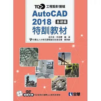 TQC+ AutoCAD 2018特訓教材-基礎篇(附範例光碟),作者:吳永進、林美櫻、電腦技能基金會,出版社:全華,ISBN:9789864635757