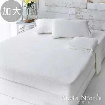 產品內容物與規格說明/保固資訊◆內容物:特大雙人防水床包式竹炭保潔墊X1 ◆表布材質:100%POLYESTER表布+底部特殊防水加工布 ◆填充物:竹炭紗棉+高彈性透氣聚酯纖維棉 ◆尺寸:6X7尺(180X210CM);可包覆床墊厚度:30CM±3% ◆產地:台灣精製 ◆清潔保養方式:中性洗滌劑/低溫水洗(勿超過40度)╱不可烘乾╱不可漂白/不可浸泡