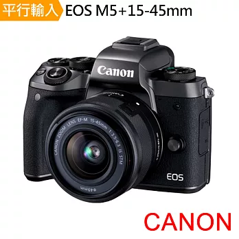 Canon EOS M5+15-45mm(中文平輸)-送32G記憶卡+專屬鋰電池+專屬座充+單眼相機包+中型腳架+減壓背帶+大吹球清潔組+硬式保護貼黑色