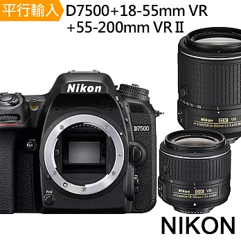Nikon D7500+18-55mm VR+55-200mm VR II雙鏡組*(中文平輸)-送64G記憶卡+鋰電池+相機包+外出型腳架+防潮箱+專用拭鏡筆+大清+保