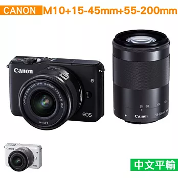 Canon EOS M10 +15-45mm+55-200mm *(中文平輸)-送64G記憶卡+副廠電池+桌上型小腳架+讀卡機+相機清潔組+高透光保護貼白色