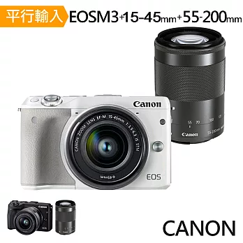 Canon EOS M3+15-45mm+55-200mm(中文平輸)-送64G記憶卡+專用鋰電池+座充+單眼雙鏡包+拭鏡筆+減壓背帶+強力大吹球清潔組+硬式保護貼白色