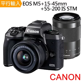 Canon EOS M5+15-45mm+55-200mm IS STM(中文平輸)-送多功能讀卡機+相機清潔組+高透光保護貼黑色