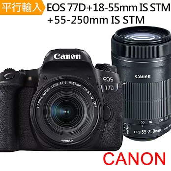 Canon EOS 77D+18-55mm+55-250mm IS STM雙鏡組*(平輸)-送64G鋰電池座充+雙鏡包+外出腳架+防潮箱+減壓背帶+拭鏡筆+大清潔組保護貼